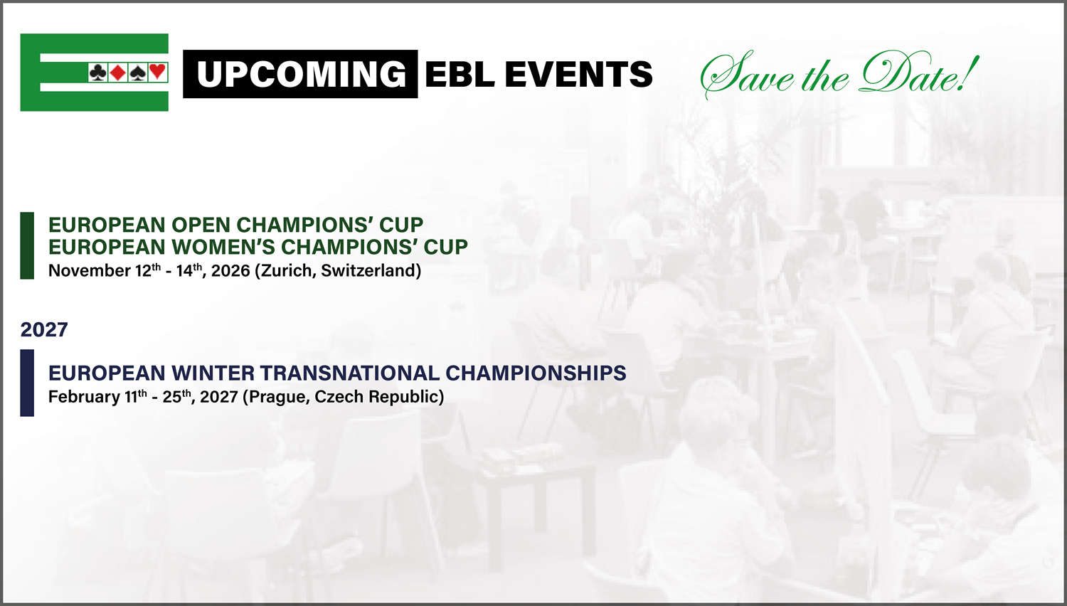 EBL Competitors commitment form to be sent to Catherine Vitry at secretariat@europeanbridge.org before the start of the event.